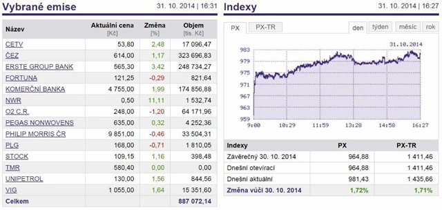 Index PX v pátek vzrostl o 1,72 % na 981,43 bodu.