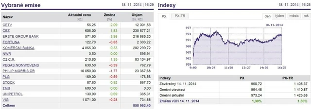 Index PX v úterý připsal 1,30 % na 973,24 bodu.