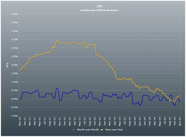 Podle údajů neharmonizovaných s metodikou výpočtů EU se ceny v Itálii v listopadu meziročně zvýšily taktéž o 0,2 % po růstu o 0,1 % v říjnu. Meziměsíčně neharmonizovaný index spotřebitelských cen klesl o 0,2 % při očekávání poklesu o 0,4 % po růstu o 0,1 % v říjnu.