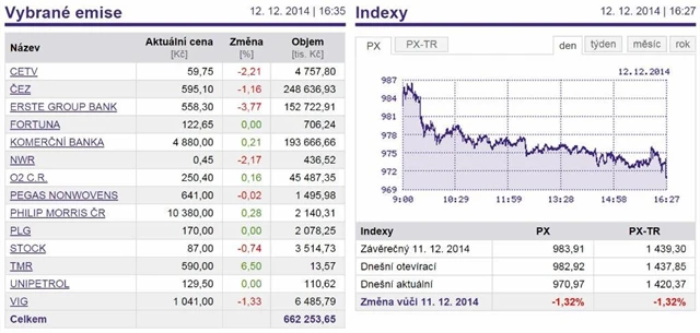 Index PX v pátek klesl o 1,32 % na 970,97 bodu.