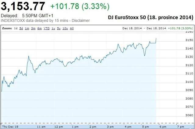 Evropské akcie zaznamenaly největší třídenní zisk za dva roky