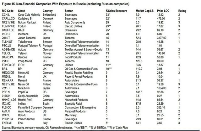 Ruská ekonomika balancuje na hraně recese a mnoho společností, které v tomto regionu operují, má důvod k obavám. Které společnosti mají na Rusko největší expozici?