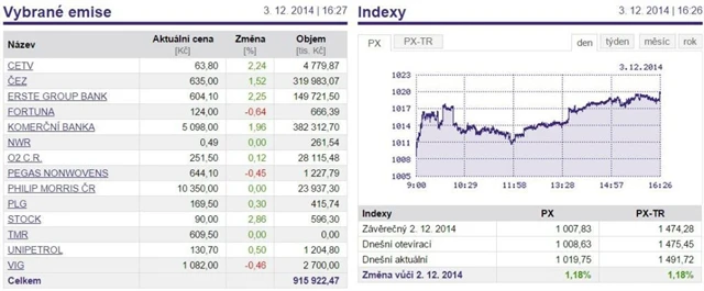 Index PX ve středu připsal 1,18 % na 1 019,75 bodu.