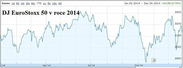 Za celý rok získal celoevropský index 4,35 %. Britský index ztratil 2,61 %, německý DAX za rok 2014 přidal 2,25 %, francouzský CAC 40 končil rok slabší o 0,32 %. Užší celoevropský index DJ EuroStoxx 50 mírně vzrostl o 0,79 %.