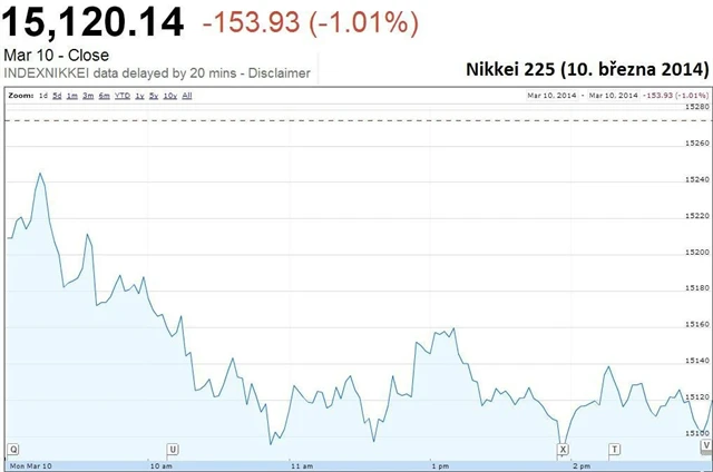 Čínský Shanghai Composite odepsal 2,86 % a poprvé od konce ledna spadl pod hranici 2 000 bodů, hongkongský Hang Seng 1,75 % a japonský Nikkei 1,01 %. Australský S&P/ASX 200 klesl o necelé procento a jihokorejský Kospi odevzdal 1,03 %.