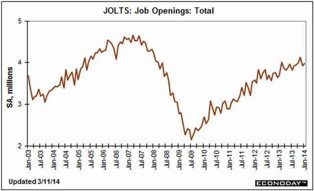 Počet volných pracovních pozic v USA v lednu vzrostl na 3,974 milionu. V meziročním srovnání se jedná o 8% růst. Data za prosinec byla revidována na 3,914 milionu z 3,990 milionu.