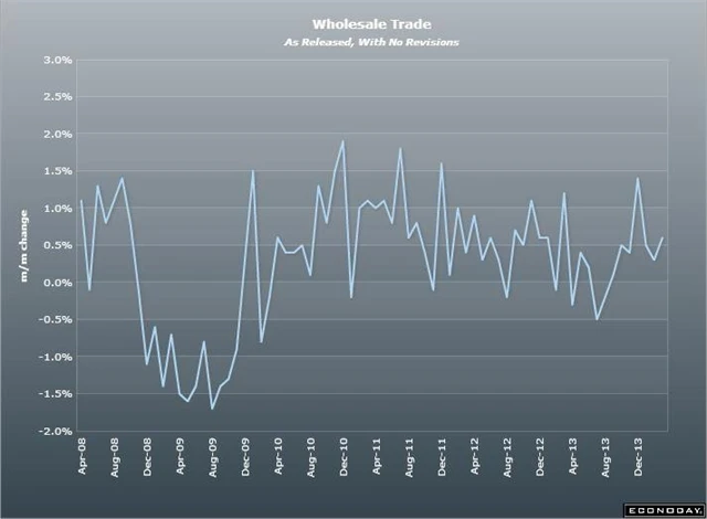 Americké velkoobchodní zásoby v lednu vzrostly více, než se čekalo. Meziměsíční růst v lednu dosáhl tempa 0,6 % (odhad: 0,4 %). K růstu velkoobchodních zásob přispěly zejména automobilky a strojírenské společnosti. Bez započtení automobilů velkoobchodní zásoby v lednu vzrostly o 0,4 %. Data za prosinec byla revidována na +0,4 % z +0,3 %.
