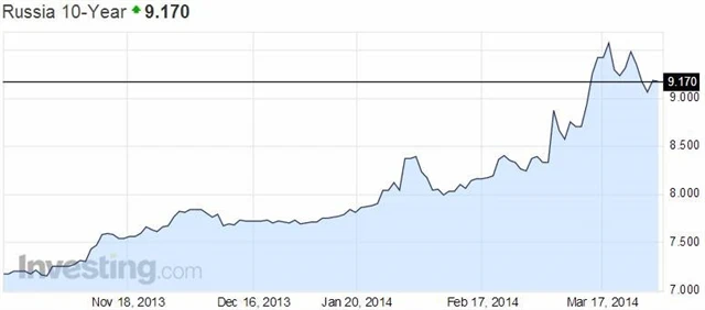 Ruský ministr hospodářství Alexej Uljukajev tento týden uvedl, že z Ruska by v letošním roce mohl odtéci zahraničí kapitál v objemu kolem 100 miliard dolarů. V takovém případě by podle něj ruská ekonomika letos stoupla pouze o 0,6 %. Lednová prognóza ministerstva přitom počítala s růstem o 2,5 %. Světová banka tento týden předpověděla, že v případě prohloubení krize kolem Ukrajiny by mohl hrubý domácí produkt Ruska letos klesnout až o 1,8 % a odliv kapitálu dosáhnout rekordních 150 miliard dolarů. Její prognóza předpokládá, že se západní země zdrží obchodních sankcí vůči Rusku. Podle optimističtějšího scénáře Světové banky, který počítá jen s krátkodobými důsledky krize, ekonomika vzroste o 1,1 %. V prosinci banka odhadovala pro Rusko růst o 2,2 %.