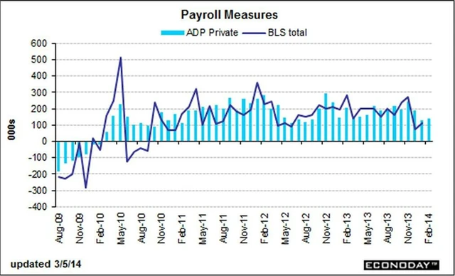 Analytici v anketě agentury Bloomberg očekávali, že v únoru vznikne v průměru až 155 000 nových míst. Původní údaj ADP za leden uváděl, že v lednu vzniklo 175 000 míst, podle nového zpřesněného údaje jich však bylo jen 127 000.