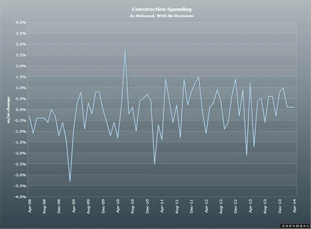 USA: Stavební výdaje v únoru meziměsíčně vzrostly o 0,1 % (odhad: +0,1 %, leden revidován na -0,2 % z +0,1 %)