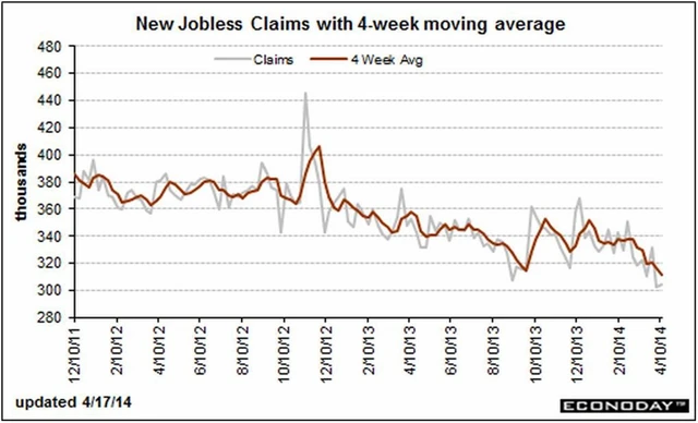 Týdenní počet nových žádostí o podporu v nezaměstnanosti ve Spojených státech v týdnu do 12. dubna vzrostl o 2 tisíce na 304 tisíc. Čekal se růst na 315 tisíc. Předchozí týden byl revidován na 302 tisíce z 300 tisíc. Počet pokračujících žádostí v týdnu do 5. dubna klesl na 2,739 milionu, čekal se růst na 2,780 milionu po předchozích 2,750 milionu (revidováno z 2,776 milionu). Čtyřtýdenní průměr klesl o 4 750 na 312 tisíc z 316 750 (revidováno z 316 250).