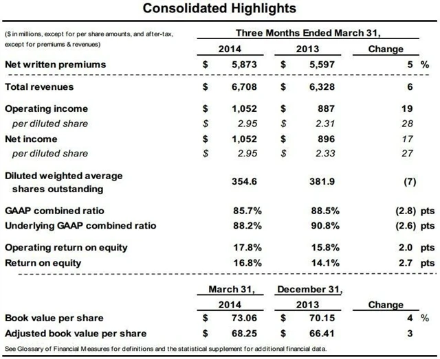Výsledky Travelers v 1Q2014: Zisk na akcii 2,95 USD (odhad: 2,16 USD), tržby: 6,71 miliardy USD (odhad: 6,60 miliardy USD)