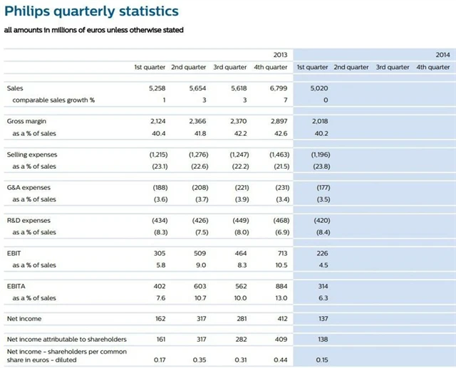 Ziskové ukazatele nizozemského výrobce elektroniky Philips za první čtvrtletí výrazně klesly a snížily se i jeho tržby. Společnost v úterý uvedla, že její výkon oslabily náklady na restrukturalizaci, nepříznivé vlivy kurzových změn a slabší poptávka v některých klíčových zemích.