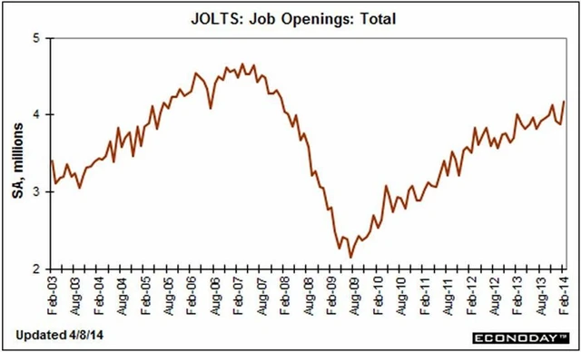 Americké podniky v únoru nabízely 4,173 milionu volných pracovních pozic, nejvíce od ledna 2008. Meziměsíčně vzrostl počet volných pracovních pozic o 2,9 %. Uvedlo to v úterý americké ministerstvo práce. Čísla tak naznačují, že by zaměstnanost v USA mohla v následujících měsících solidně růst.
