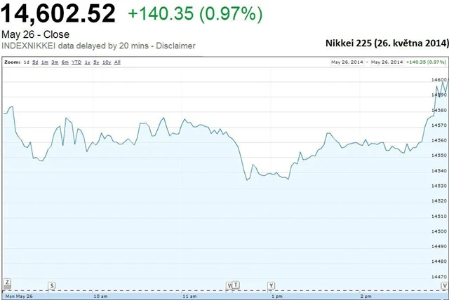 Akciový index MSCI pro Asii a Tichomoří bez zahrnutí Japonska dnes stoupl o 0,2 % a hlavní index tokijské burzy Nikkei 225 se zvýšil o procento.