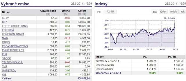 Index PX ve středu zpevnil o 0,55 % na 1 014,76 bodu.