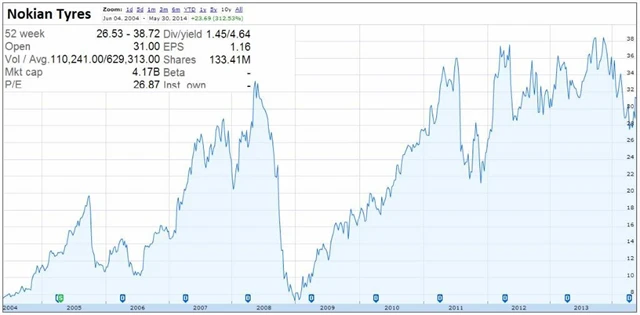 Podle Nadely je společnost Nokian Tyres zajímavá také tím, že velké množství vyrobených pneumatik exportuje do Ruska, které je z tohoto pohledu obrovským trhem. Tržní kapitalizace firmy se pohybuje kolem 4,17 miliardy eur a její akcie se obchodují při P/E okolo 27. Firma vyplácí pravidelnou roční dividendu, letos 1,45 eura na akcii (dividendový výnos 5,26 %).