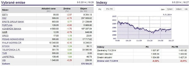 Index PX v pátek odepsal 0,32 % na 1 004,69 bodu.