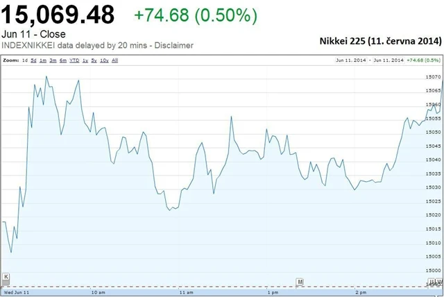 "Obchodní aktivita se snižuje kvůli nástupu léta a čtvrtečnímu zahájení světového fotbalového šampionátu," říká Vishnu Varathan, hlavní ekonom Mizuho Bank.