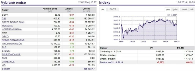 Index PX ve čtvrtek odepsal jen mírných 0,02 % na 1 037,39 bodu.