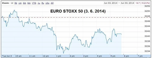 Investoři vyhlížejí nejdůležitější evropskou makroekonomickou událost tohoto týdne - zasedání Evropské centrální banky, které je naplánováno na čtvrtek. V úterý byla přitom zveřejně a inflace ev eurozóně, která nenaplnila ani už tak pesimistická očekávání. Harmonizovaný index spotřebitelských cen pro eurozónu vzrostl meziročně v květnu jen o 0,5 %. Čekal se růst o 0,6 %. To jen podpořilo předpoklad, že centrální bankéři ve čtvrtek zasáhnou. Investoři však netuší jak a nervozita tak roste.