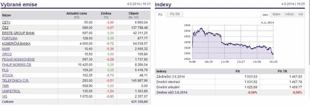 Hlavní burzovní index PX oslabil o 0,56 % na 1 025,89 bodu.
