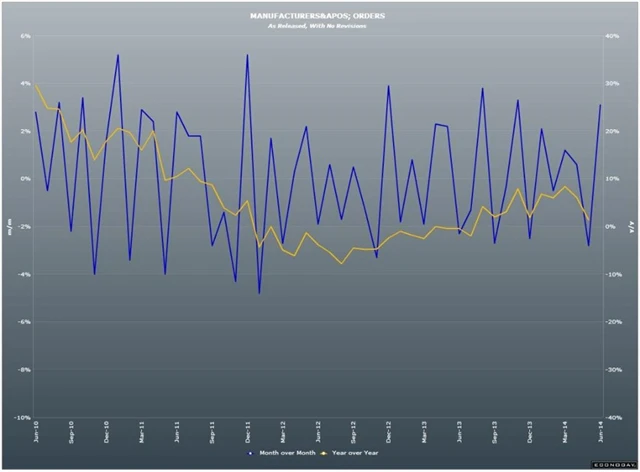 Domácí zakázky se meziměsíčně nezměnily. Poptávka ze zahraničí však navzdory ukrajinské krizi stoupla o 5,5 %. Z toho objem zakázek od dalších členů eurozóny se zvýšil o 9,9 %. Zakázky firem vyrábějících spotřební zboží vzrostly o 7,1 %.