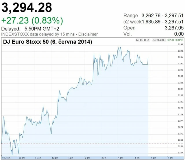 Evropské akcie v pátek navázaly na čtvrteční vývoj a dále zdražovaly. Investory den po zasedání Evropské centrální banky (ECB), na kterém bylo rozhodnuto o dalším snížení úrokových sazeb a spuštění série opatření na podporu evropského hospodářství, podpořily údaje z amerického trhu práce.