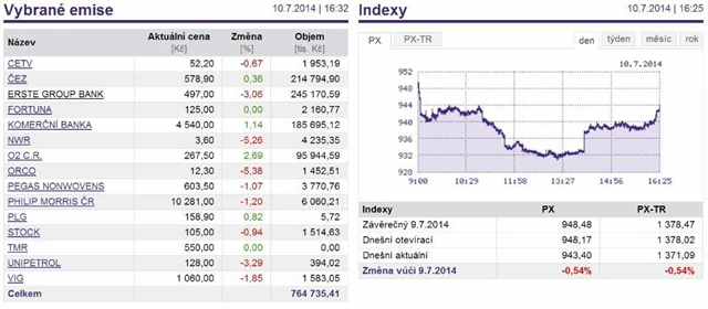 Index PX klesl o 0,54 % na 943,40 bodu.