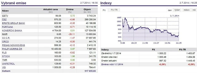 Index PX ve středu ztratil 0,29 % na 997,32 bodu.