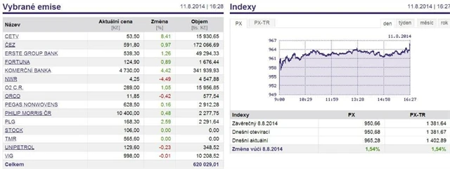 Index PX v pondělí připsal 1,54 % na 965,28 bodu.