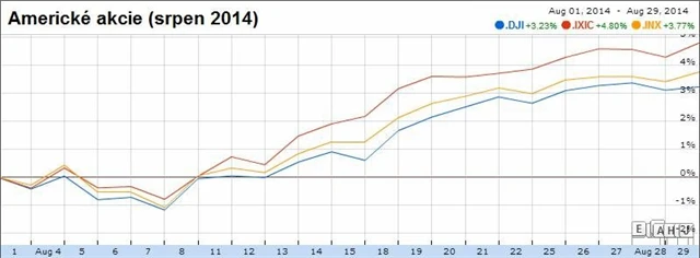 Celý srpen byl pro S&P 500 co do výkonnosti nejlepší za uplynulých 14 let. Šlo o nejvýkonnější měsíc od letošního února. Dow v srpnu stoupl o 3,2 % a Nasdaq o 4,8 %.