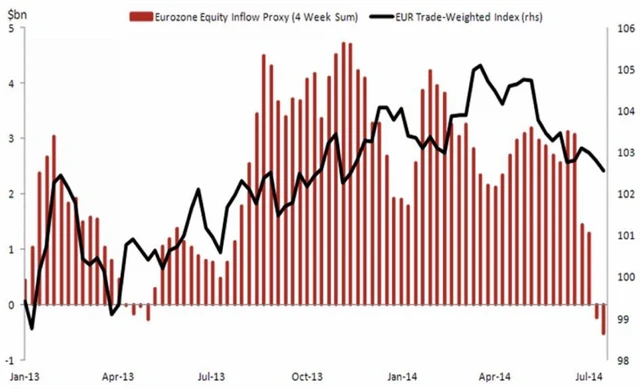 Vysvětlovalo by to, proč euro za poslední rok zajímavě posilovalo (od května ale výrazně koriguje), ačkoli byly ekonomické fundamenty slabé a měnová politika už tak velice uvolněná.