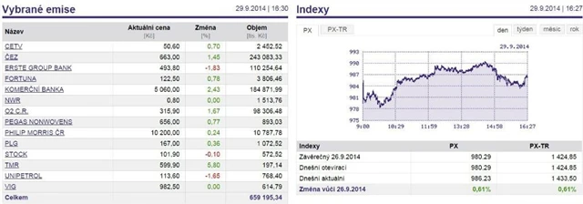 Index PX v pondělí posílil o 0,61 % na 986,23 bodu.