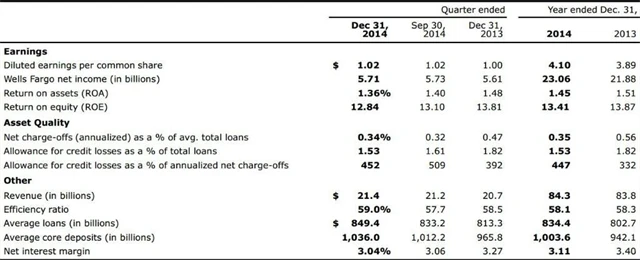 Čistý zisk americké banky Well Fargo ve čtvrtém kvartále vzrostl meziročně o 1,8 % na 5,71 miliardy dolarů (1,02 USD na akcii) z 5,61 miliardy dolarů (1 dolar na akcii) v minulém roce. Výnosy vzrostly na 21,44 miliardy dolarů z 20,67 miliardy dolarů v předchozím roce.