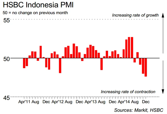 Indonésie: Index nákupních manažerů ve zpracovatelském sektoru v prosinci klesl na 47,6 bodu