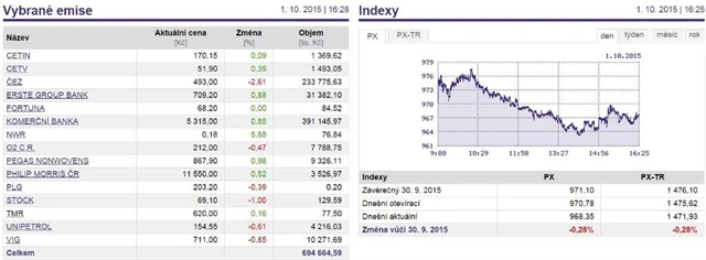 Index PX ve čtvrtek odepsal 0,28 % na 968,35 bodu.
