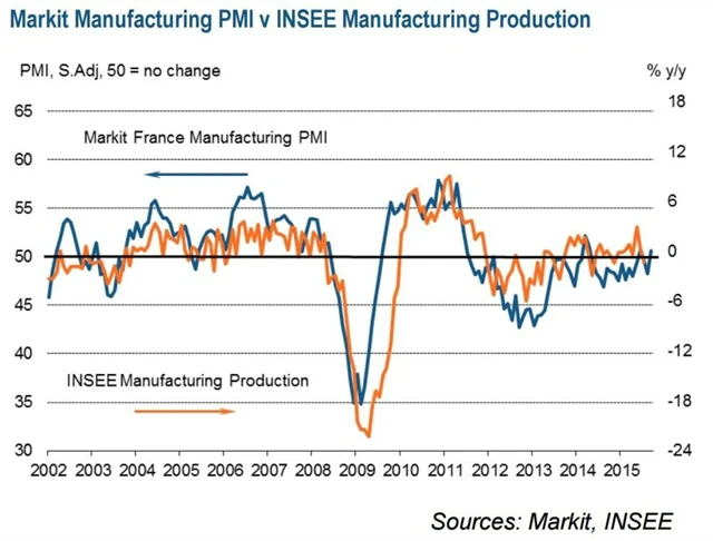 Aktivita francouzského zpracovatelského sektoru podle finálních dat agentury Markit v září nečekaně vzrostla. Index nákupních manažerů přeskočil padesátibodovou hranici dělící kontrakci od expanze a vzrostl na 50,6 bodu ze srpnových 48,3 bodu, předběžná data hlásila růst na 50,4 bodu. Produkce v sektoru rostla nejrychleji za posledních 18 měsíců a nové zakázky se stabilizovaly, zatímco ceny vstupů klesly kvůli klesajícím cenám komodit.