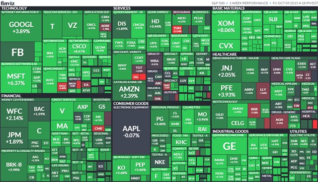 Index Dow za celý týden posílil o 3,72 %, S&P 500 přidal 3,26 % a Nasdaq Composite zpevnil (i díky obnovenému zájmu o biotechnologické tituly) o 2,61 %. Díky oživení cen ropy se dařilo například ropným společnostem, mezi poražené se po špatných výsledcích zařadil provozovatel rychlého občerstvení Yum! Brands.