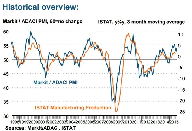 Zpracovatelský sektor v Itálii v říjnu expandoval prudčeji, než se čekalo