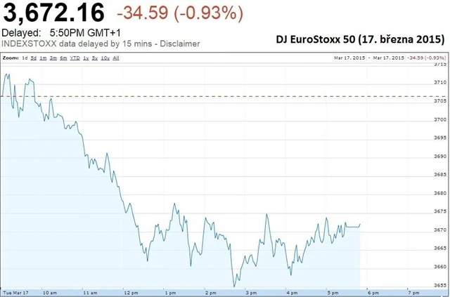 V letošním roce index zpevnil už o 16 % díky ohlášenému kvantitativnímu uvolňování ze strany Evropské centrální banky. Jádrová inflace v eurozóně v únoru mírně zrychlila na 0,7 % meziročně z 0,6 % v lednu. Celkově však spotřebitelské ceny meziročně klesly o 0,3 %, jak předvídala předběžná data.