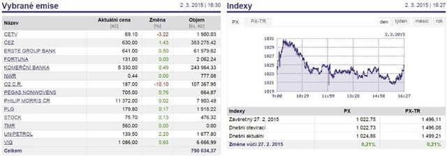 Index PX v pondělí zpevnil o 0,21 % na 1 024,86 bodu.