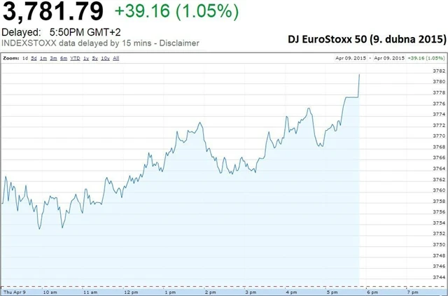 Stoxx Europe 600 letos posílil již o 19 % díky zahájení programu kvantitativního uvolňování ze strany Evropské centrální banky. Kvantitativní uvolňování, které před lety zavedla americká centrální banka Fed, pomohlo americkým akciím více než ztrojnásobit hodnotu od dvanáctiletého dna, na něž spadly v březnu 2009.