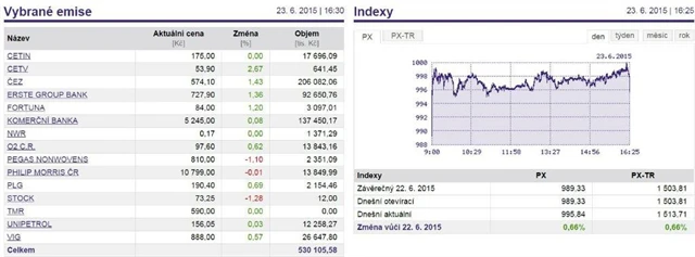 Index PX v úterý připsal 0,66 % na 995,84 bodu.