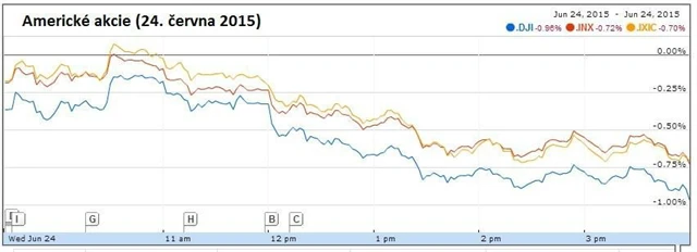 Americké akcie ve středu oslabily. Trhy ovládly obavy o budoucnost Řecka