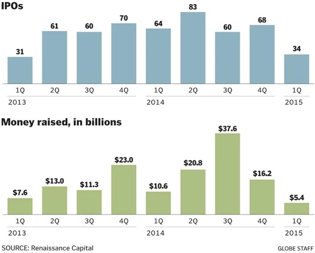 Podle údajů Renaissance Capital v USA v letošním prvním pololetí (do 16. června) proběhlo 101 IPO v celkové hodnotě 19,7 miliardy dolarů. V prvním pololetí loňského roku se uskutečnilo 158 IPO, jejichž prostřednictvím firmy získaly celkem 35,4 miliardy dolarů. V meziročním srovnání tedy hodnota IPO ve Spojených státech klesla o 44 %.