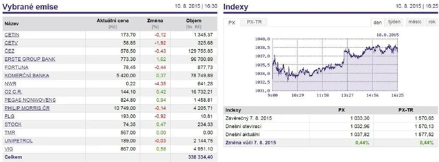 Index PX posílil o 0,44 % na 1 037,82 bodu.