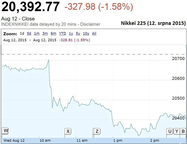 Ve středu byla také zveřejněna data o čínských maloobchodních tržbách, průmyslové výrobě a investicích, na trhy však měla jen minimální dopad. Maloobchodní tržby v červenci zpomalily meziroční růst na 10,5 % oproti červnovým 10,6 %, očekával se přitom stejný výsledek jako v červnu. Průmyslová výroba v červenci meziročně vzrostla jen o 6 %, ačkoli se očekával 6,6% růst po červnových 6,8 %. Investice pak rostly tempem 11,2 % meziročně, oproti červnu tedy tempo růstu zpomalilo o 0,2 procentního bodu, očekávalo se přitom zrychlení o 0,1 procentního bodu.