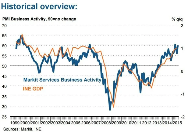 Podle dříve zveřejněných dat tempo expanze španělského zpracovatelského sektoru v srpnu rovněž mírně kleslo. Index nákupních manažerů se snížil na 53,2 bodu z 53,6 bodu v červenci, očekávala se přitom stagnace. Růst produkce byl nejlepší za poslední tři měsíce, avšak tempo růstu nových zakázek v sektoru zpomalilo na nejnižší hodnotu od prosince 2013.
