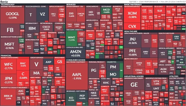 Index Dow oslabil o 1,29 % na 15 885,22 bodu. Širší index S&P 500 klesl o 1,56 % na 1 877,07 bodu a Nasdaq Composite uzavřel na 4 518,49 bodu se ztrátou 1,58 %. V červených číslech zakončilo všech deset základních sektorů. Odvětví energetiky a základních materiálů odepsaly 3,5 %, respektive 2,3 %. Pod tlakem byly také finanční společnosti (-2,3 %), naopak relativně nejlépe na tom byly tituly z odvětví jako zdravotní péče (-0,77 %) a technologie (-1,06 %). Index volatility VIX přidal 8,1 % na 24,15 bodu a výnos 10letých vládních dluhopisů USA spadl téměř o pět bazických bodů na 2,0047 %.